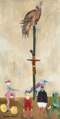 Anna Margit (Eredetileg Sichermann, aztán Sólyom) magyar festőművész, Ámos Imre felesége. A Képzőművészeti Főiskolát Vaszary János növendékeként végezte el 1936-ban. 1937-től nyaranta férjével, Ámos Imrével együtt a szentendrei művésztelepen dolgozott. 1946 és 1948 között az Európai iskola rendezésében állította ki a naiv, gyermeki látást és a szürrealista asszociációkat egyesítő műveit. Fintorgó nőalakjai, bizarr figurái álomittas hangulatukkal a lélek mélyrétegeinek rezzenéseit közvetítik. A hetvenes évektől kezdve népművészeti motívumok épültek bele a primitív iránt mindig is vonzódó művészetébe, amelyre harsány színvilág és egy paraszt-rokokónak mondható buja díszítményesség lett a jellemző. A népi bábukat idéző, rikítóan színes és virágokkal, csipkékkel, girlandokkal felcicomázott figurák kihívó esendőségükben az emberi lét groteszkségét, olykor egyenesen az abszurditását sugallják. Gyűjteményes anyagát 1948-ban és 1968-ban mutatta be az Ernst Múzeumban. Anna Margit festőművész első életmű-kiállítását 2024-ben mutatta be a Magyar Nemzeti Galéria, A bábu megszólal címmel.